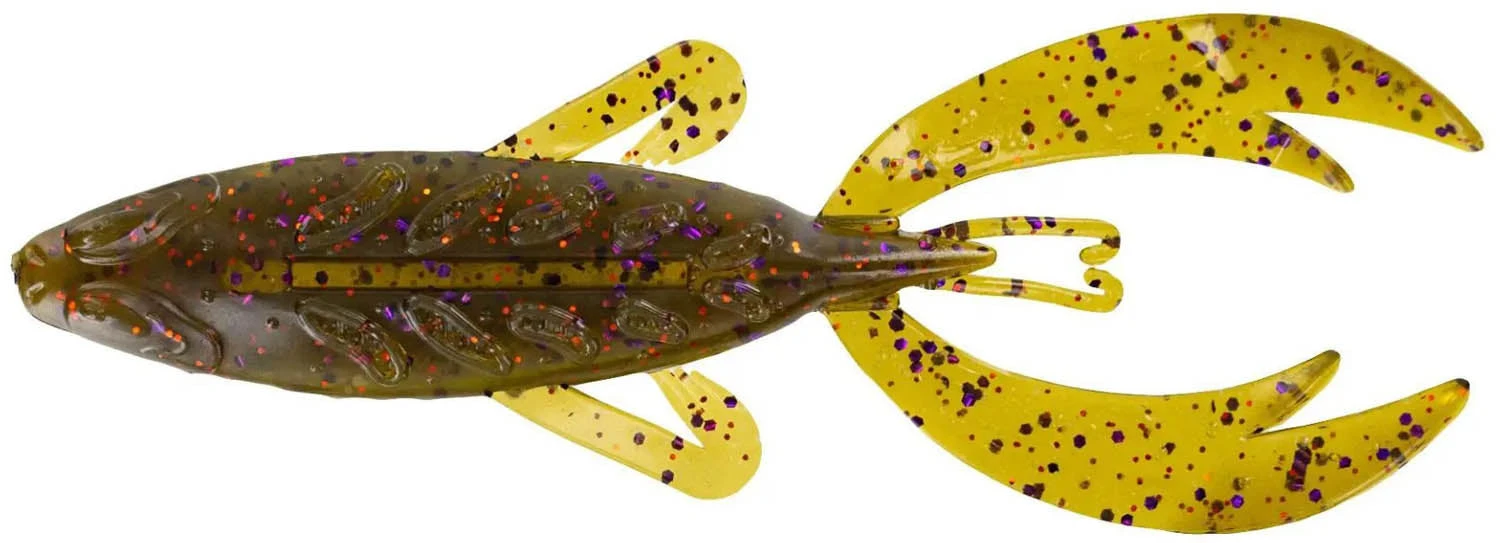 - Like soft plastic frog, but designed for more subsurface applications like lipping, pitching, Carolina rigging, or even as a jig trailer.