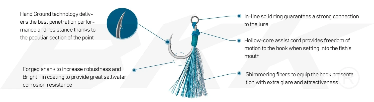 - Assist hooks like the BKK Plugging Single HD offer a little more range of motion than traditional ring-to-treble hooks, which let your fish fight without easily getting the angle to pop the hook.