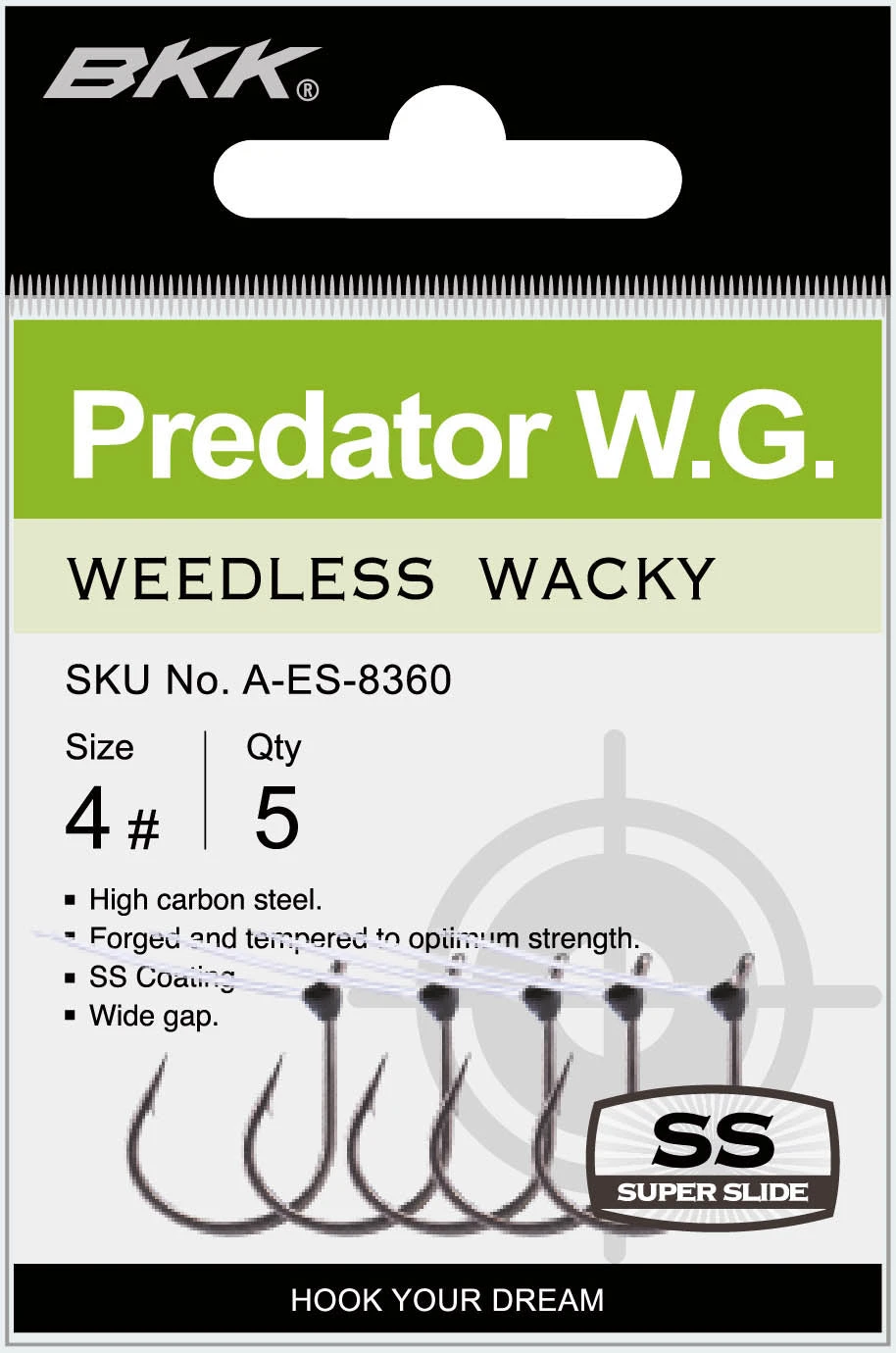 - The BKK Predator WG Weedless is a short shanked hook with a fluorocarbon weed guard optimal for the wacky rig.