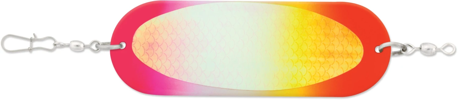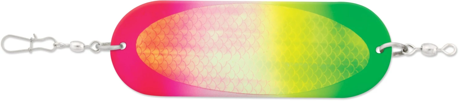 The Luhr-Jensen Jensen Trout & Kokanee Dodger is a trolling dodger designed specifically for trout and kokanee. At just shy of 4-inches (3-15/16 inches) in overall length, the Jensen Trout and Kokanee Dodger is the perfect attractor for smaller freshwater species like trout and kokanee. Its sharp side-to-side swimming motion provides a lively presentation to trailing spoons, flies and small squids. Luhr-Jensen premium plating and polishing assures a long service life and maximum flash.