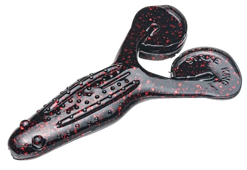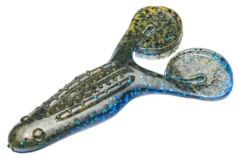 The Strike King Rage Toad is a 4 inch soft plastic frog/toad with Rage Flange appendages for legs. The Rage Flange is a small lip on the end of each leg that causes them to flap widely and create a significant amount of surface commotion, especially when used in combination with a buzzbait as a trailer.