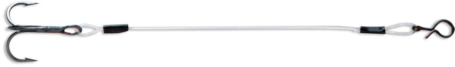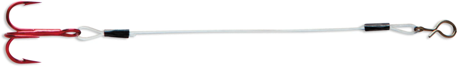 The VMC Quik Strike Treble Trailer Hook is a premium treble trailer hook rig assembled with Sufix 12 pound fluorocarbon leader, a “Fast Snap” connector, and a size 10 high-carbon steel hook. It’s designed to help with hook-up ratios when fish are short striking your lure. It can also be used for rigging larger live baitfish for muskie and pike. Available in Red and Black Nickel finishes with 2 or 3 inch leader.
