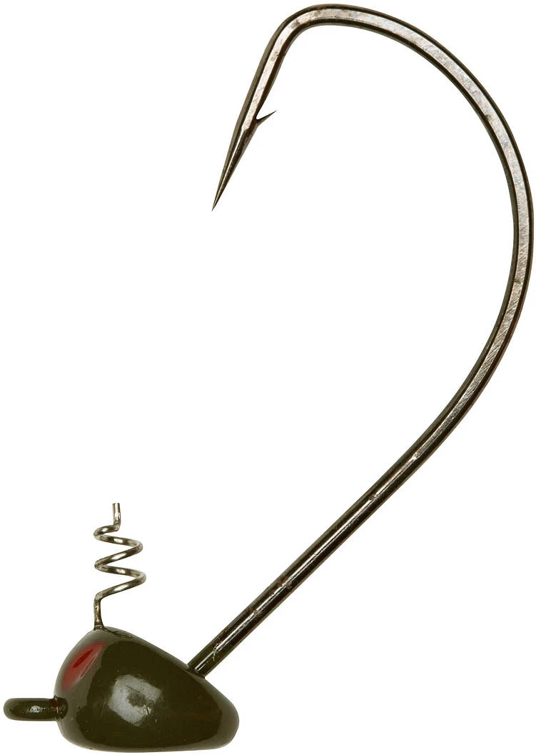 You’ve got to have the right tools to do the job right, and for power shakin’, the YUM Pumpkin Head Jig Head is the right tool. Power shakin’ takes shaky head fishing to the next level, and the Pumpkin Head jig is the foundation of that technique. The extended lure-holder spring makes rigging easy, and the flat head and horizontal line tie prompts the jig to stand straight up on bottom. Rigged with a worm or minnow-shaped plastic it mimics a fish or other invader feeding on bottom; rigged with a soft plastic craw it stands up in a defensive position.